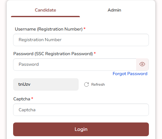 - Visit the official SSC website at ssc.gov.in and log in using your registration number and password or date of birth.